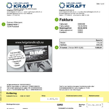 Helgeland Krafts nett- og strømkunder får både nettleie og strømforbruk på en og samme faktura, og dersom du har e-faktura slipper du å motta papirfaktura i postkassen din.